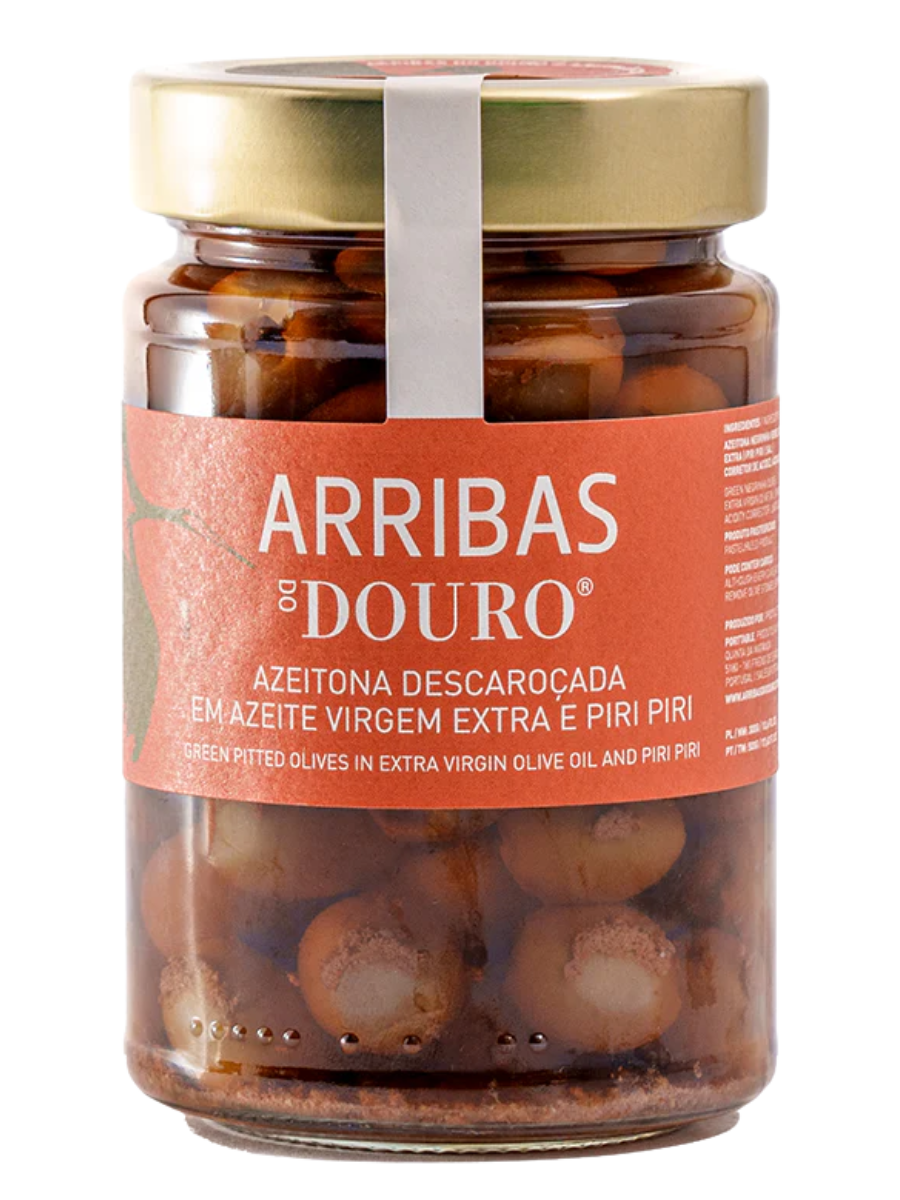 Arribas Do Douro Drylowane zielone oliwki w oliwie z oliwek z pierwszego tłoczenia i papryczka piri piri 250g