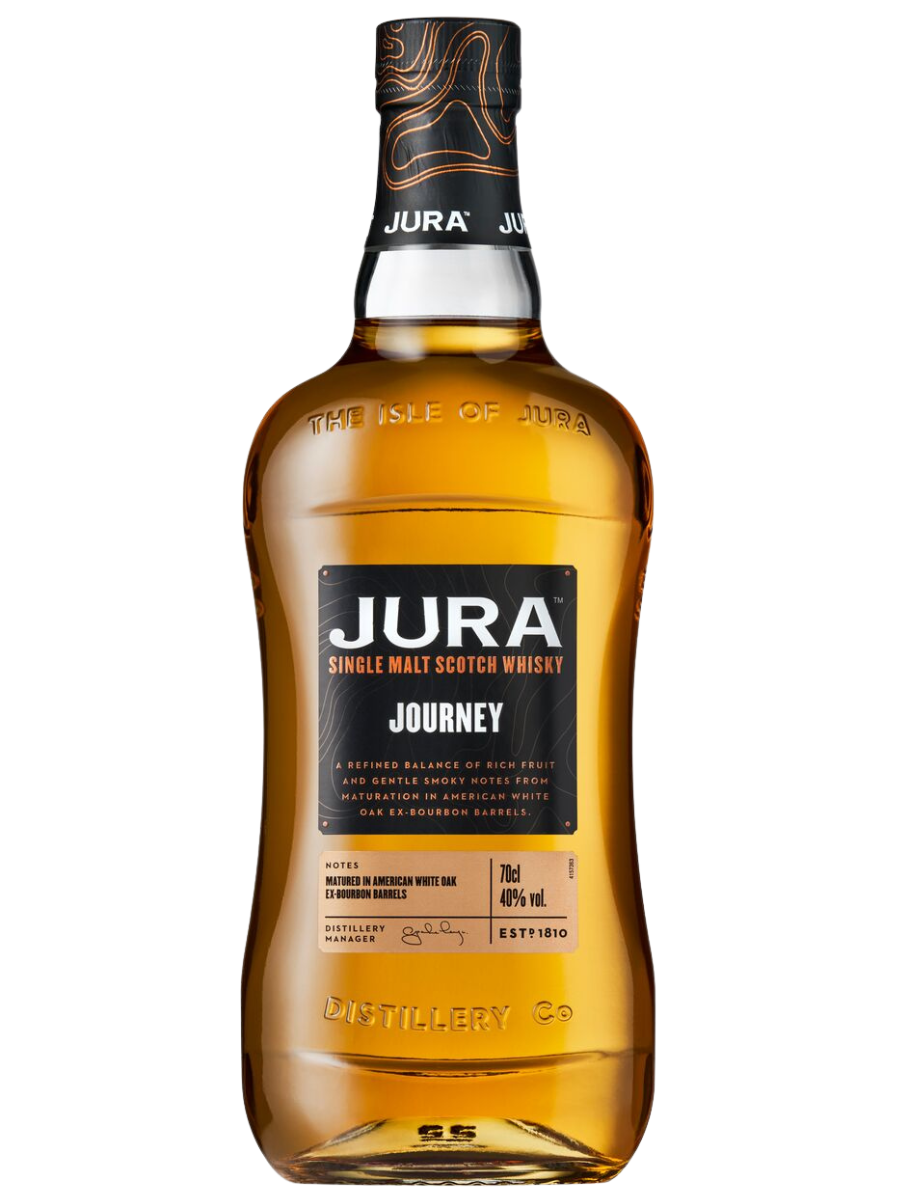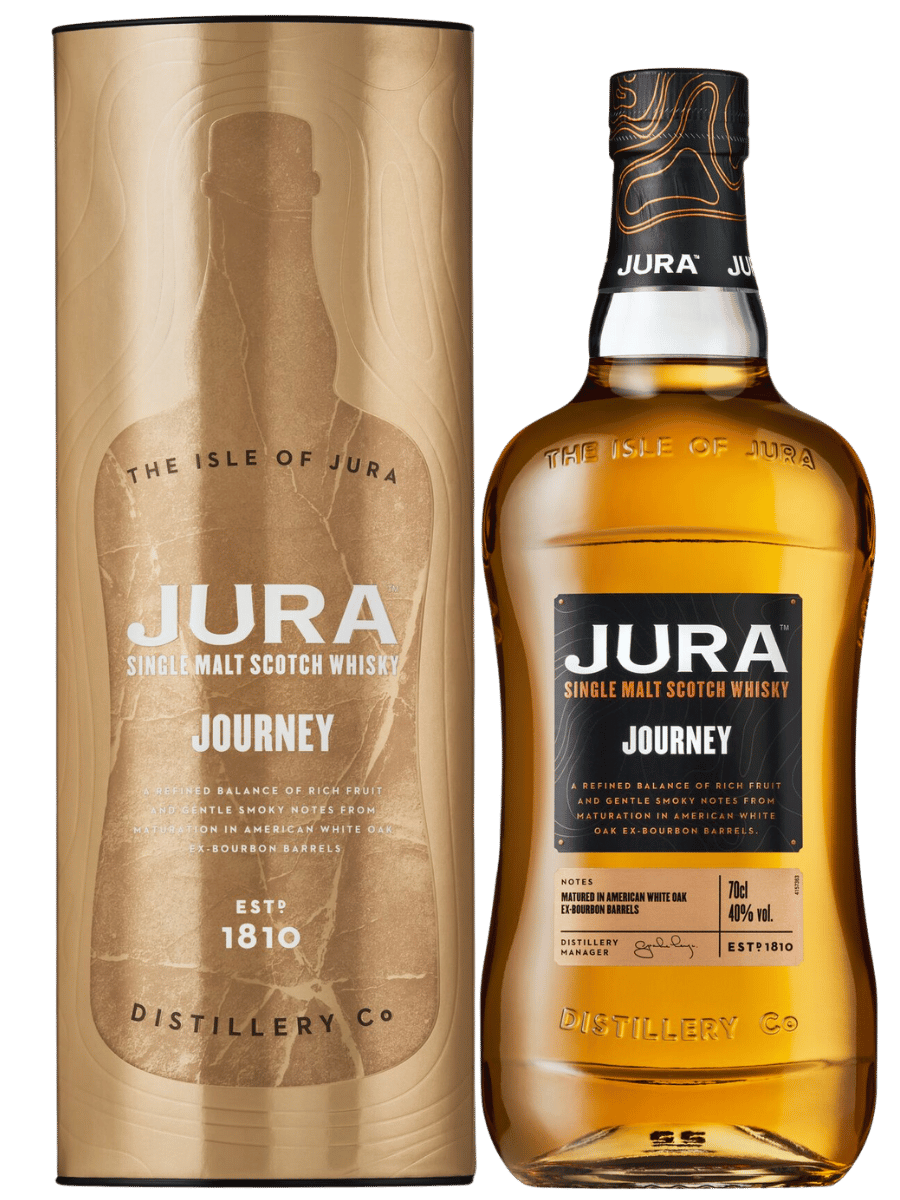 Doświadcz prawdziwego charakteru i stylu Jura Single Malt Whisky w podstawowym wydaniu portfolio. Jura Journey swój wyjątkowy charakter zawdzięcza ręcznie selekcjonowanym beczkom po bourbonie, wykonanym z białego dębu amerykańskiego, w których dojrzewa, uzyskując nuty kremowej wanilii, ciasta z orzechami pekan oraz delikatnego cynamonu i świeżej gruszki. Lekka i owocowa z delikatną, korzenną nutą stanowi idealny początek przygody z Jurą.